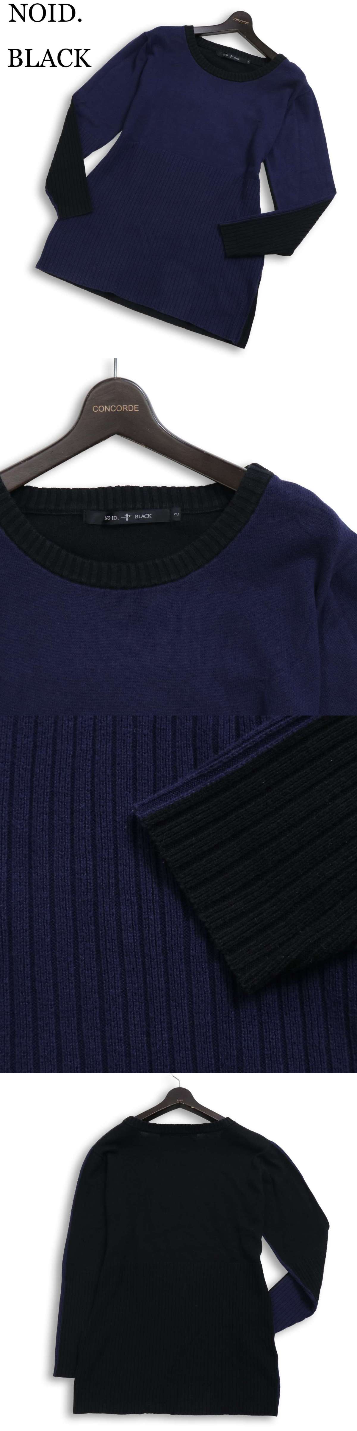 NOID. BLACK ノーアイディー 秋冬★ リブ切替 配色 プルオーバー ニット セーター Sz.2 メンズ 收藏