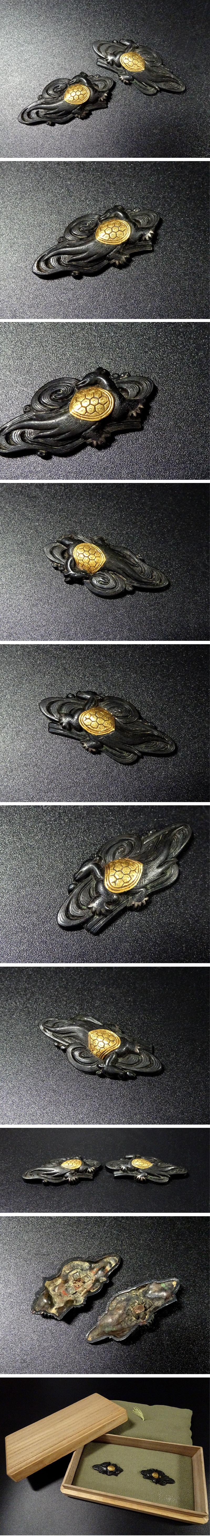 敬逢 秀逸 刀装具 霊亀に流水図目貫 無銘 赤銅地 容彫 金象嵌色絵 極上細密細工 化粧箱付き 侍 SAMURAI TST-37 收藏
