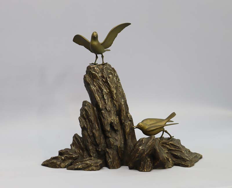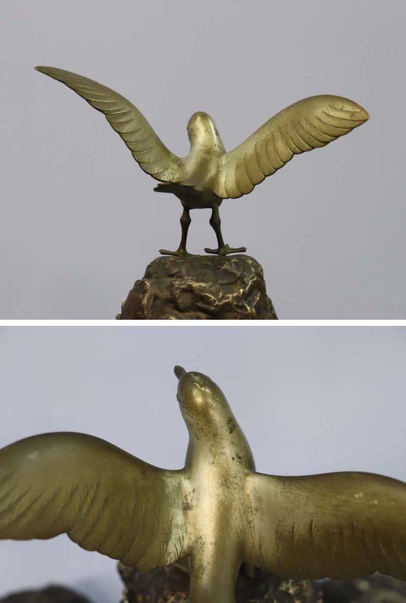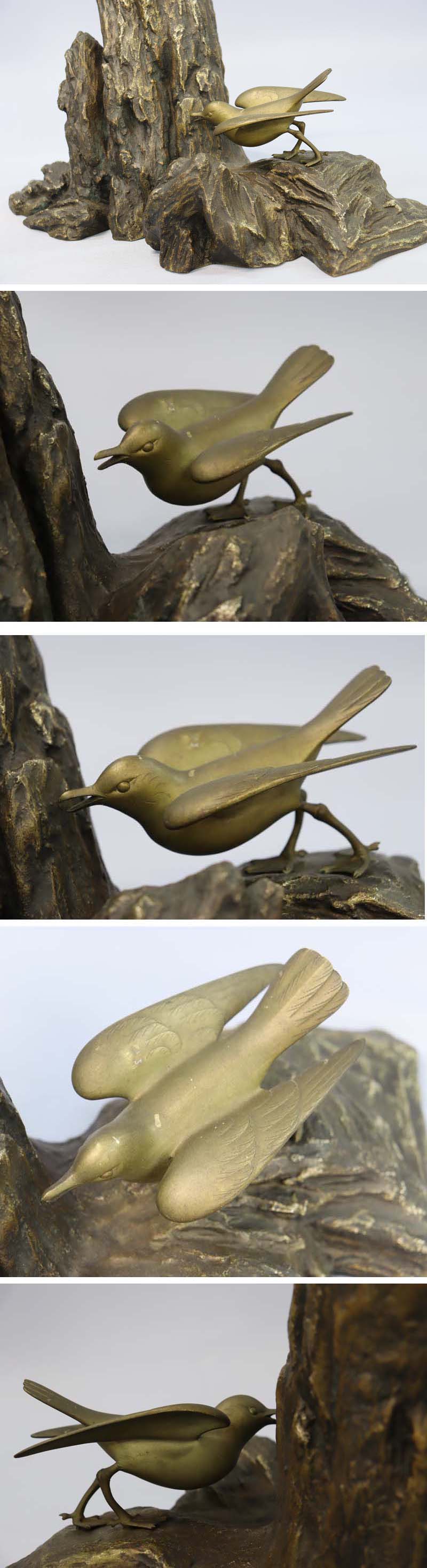 ■即決■ 真燁 作 時代 金工 岩上に鳥 銅製 置物 幅49cm 高43cm 收藏