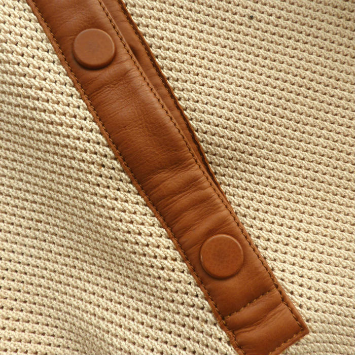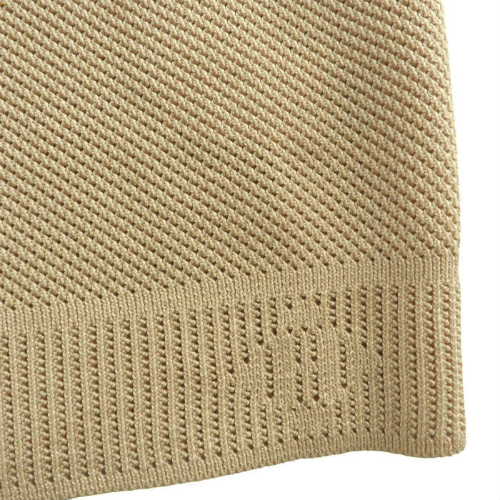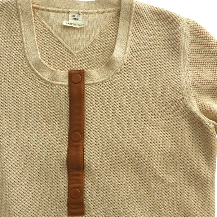 | エルメス(HERMES) コットン メッシュ ニット 半袖 レザーパーツ M ベージュ ウェア ソルド品(中古) |