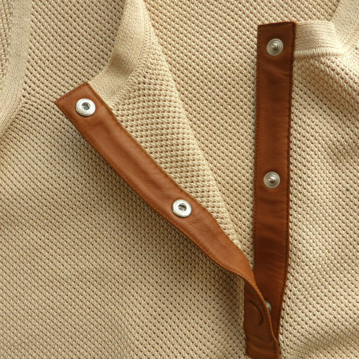 | エルメスのコットン素材を使用した半袖ニット。 透け感のある鹿の子メッシュニットを使用。 涼しげな生地感と高級感のあるレザーパーツがエルメスらしいラグジュアリーな仕上がりです。 扱いやすいコットン生地がデイリーにお使いいただけます。 カジュアルな生地やディテールはラグジュアリースタイルの外しやカジュアルなスタイルにマッチします。 シンプルなデザインが様々なスタイルで活躍する一着です。 |