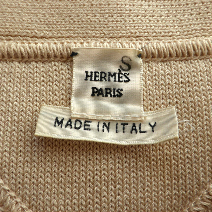 エルメス (HERMES) コットン メッシュ ニット 半袖 レザーパーツ M ベージュ ウェア ソルド品(中古) 收藏