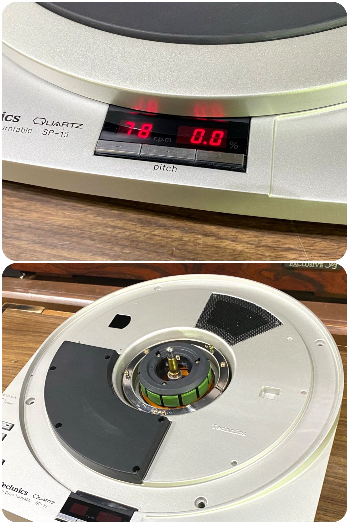 Technics SP-15 ターンテーブル 取説/固定ネジ付属 当社整備/調整済品クォーツシンセサイザ方式ダイレクトドライブターンテーブルです。