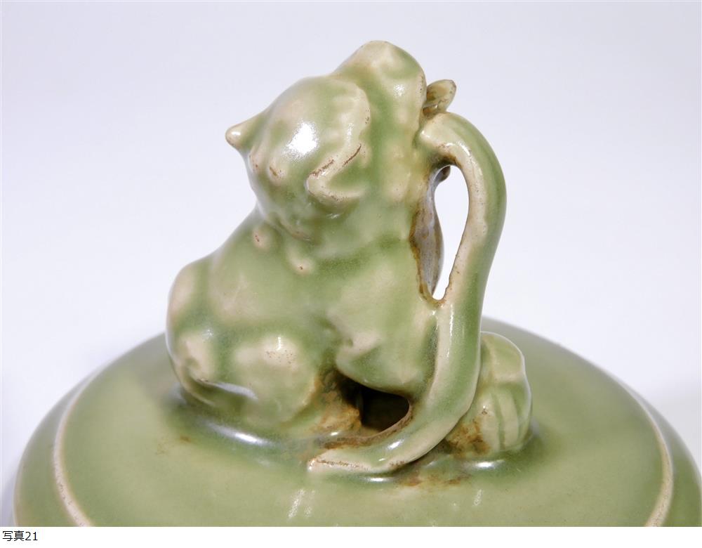 明時代 龍泉窯 青磁獅子摘三足香炉 明 七官青磁 箱付 (九州依頼品)時代物 伝世品