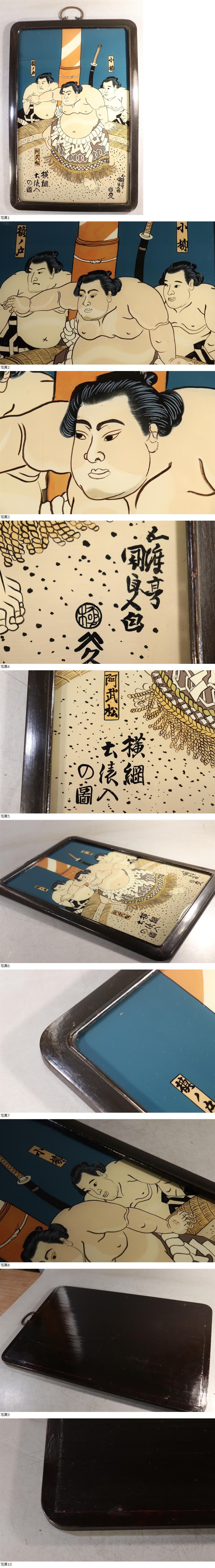 E180 額付きガラス絵 力士図 相撲 浮世絵 横綱阿武松土俵入り 額装 木版画 国貞画/55579 收藏