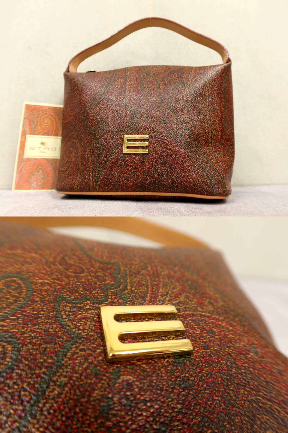 ●超美品●ETRO エトロ●ペイズリー柄●PVC カーフ レザー 本革●ミニ ハンド バッグ●ブラウン系●ゴールド金具●収納 かばん●Js65707 收藏