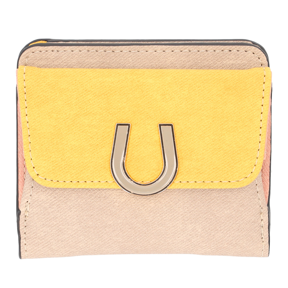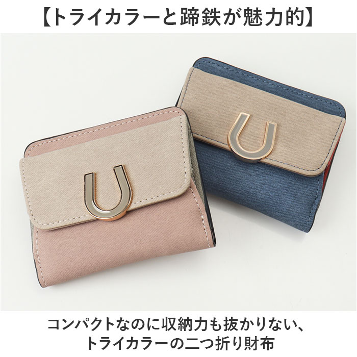 ☆ モカ ☆ エポメタルデニムライクトライカラー 二つ折り財布 ラムモード 財布 馬蹄モチーフ 二つ折り財布 レディース お財布 ミニ財布 收藏