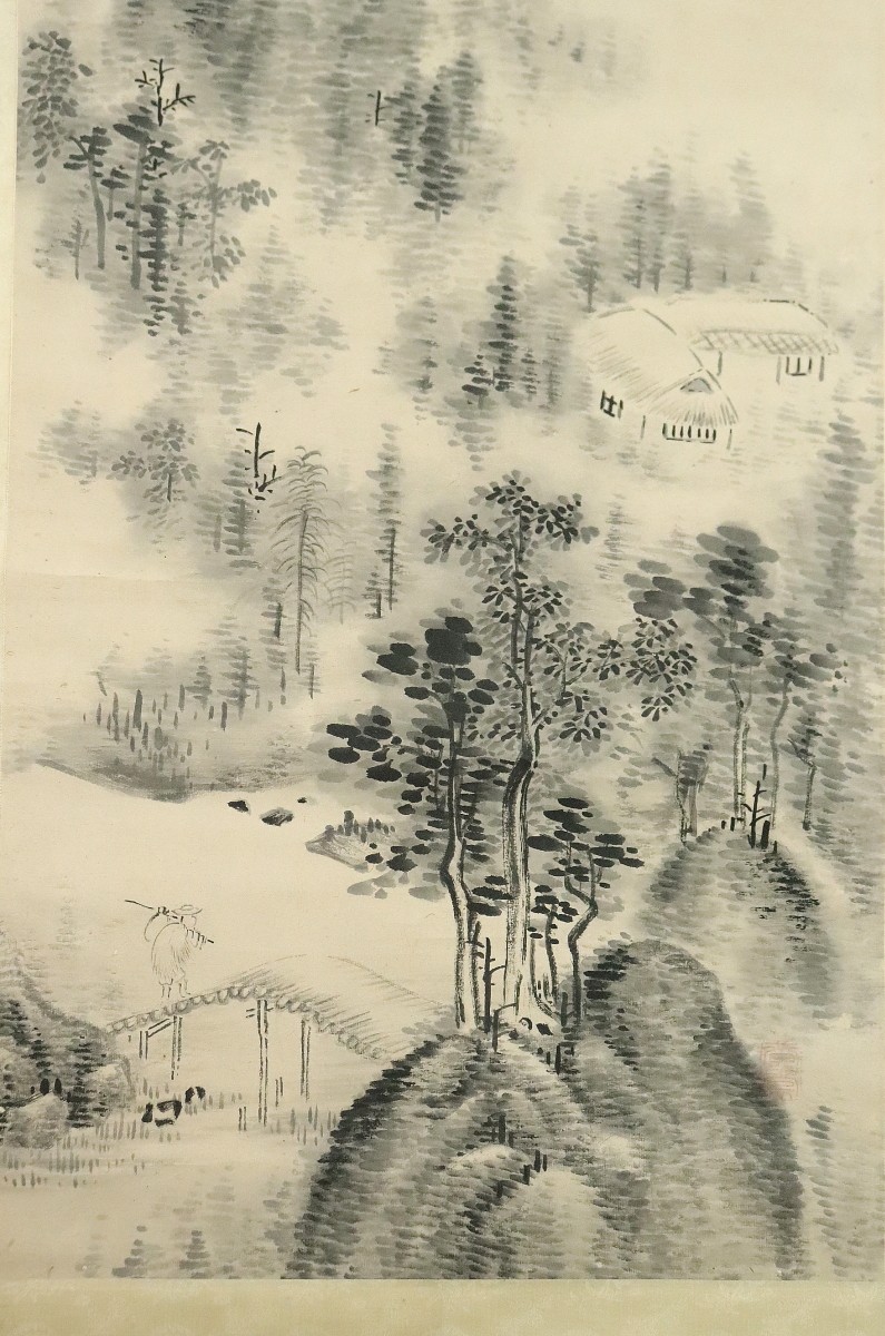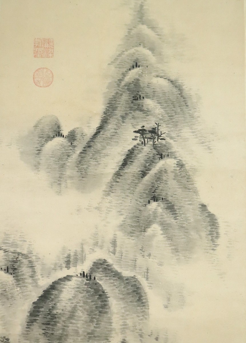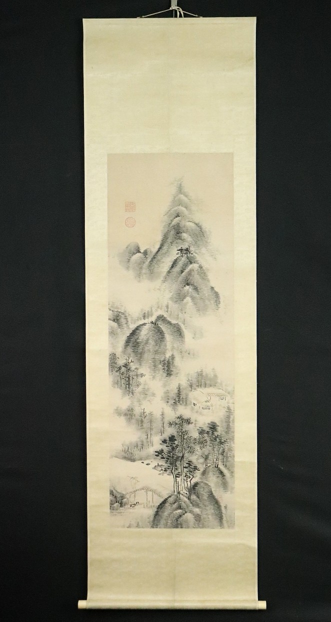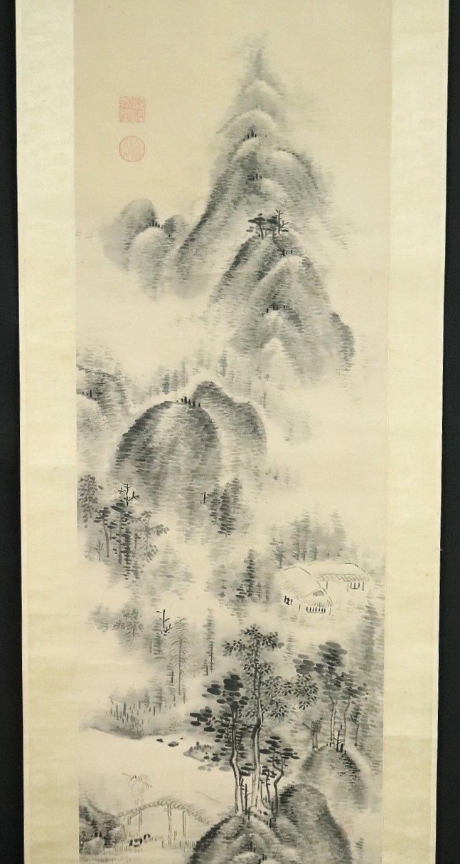 12983◆【真作】梁川星巌 米法山水図 極箱 山本北山に師事 美濃の人 漢詩人 掛軸