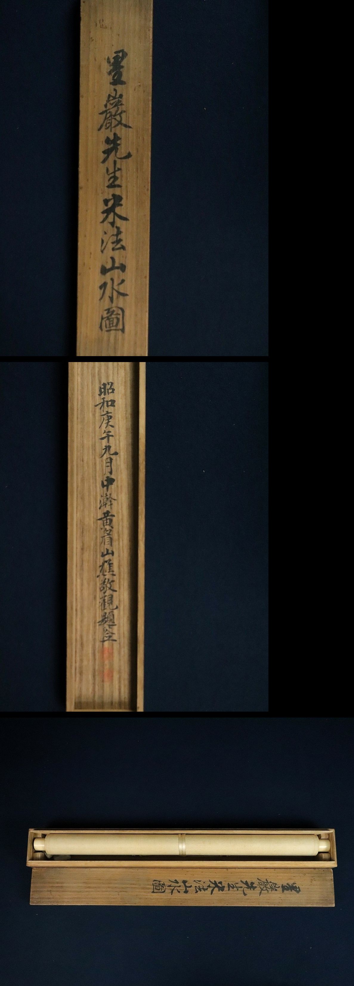 12983◆【真作】梁川星巌 米法山水図 極箱 山本北山に師事 美濃の人 漢詩人 掛軸 收藏