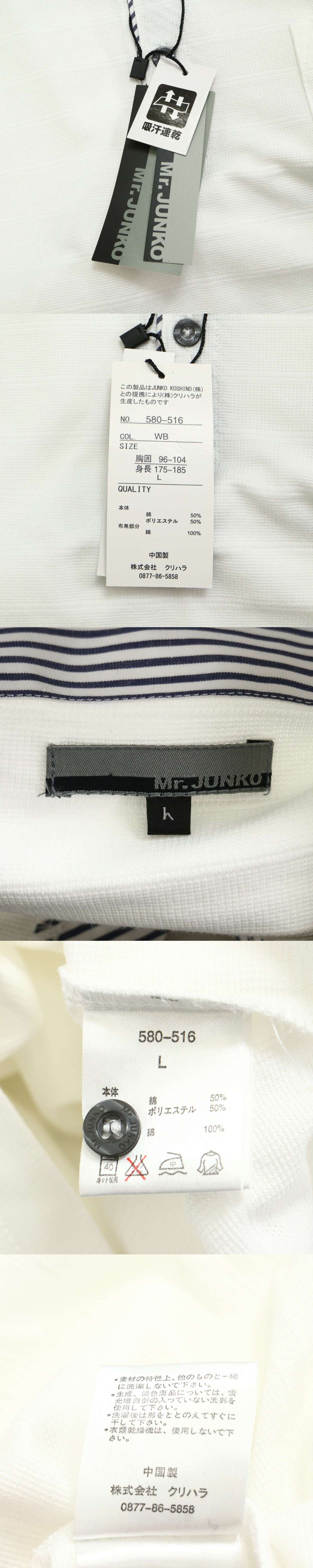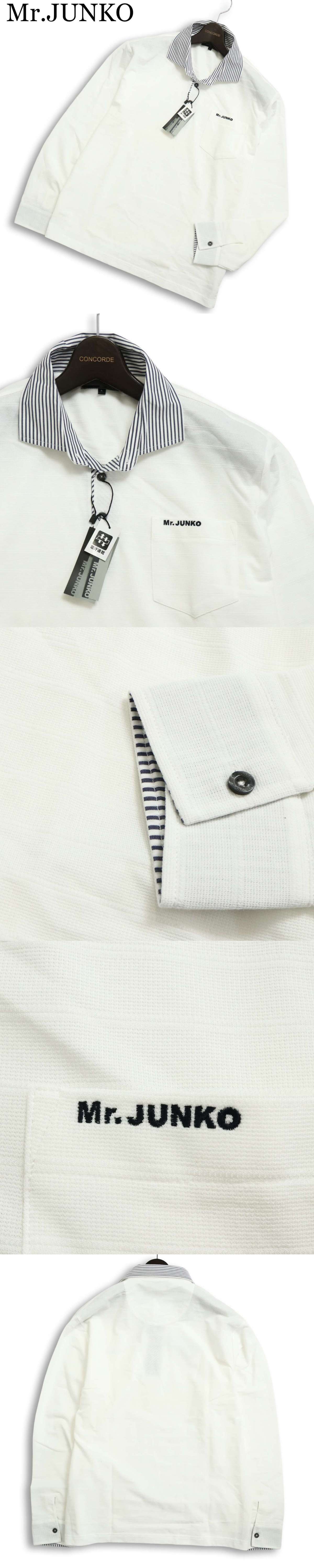 【新品 未使用】 Mr.JUNKO ミスタージュンコ 通年 ロゴ刺繍★ 吸汗速乾 長袖 襟切替 ポロシャツ Sz.L メンズ 白 收藏