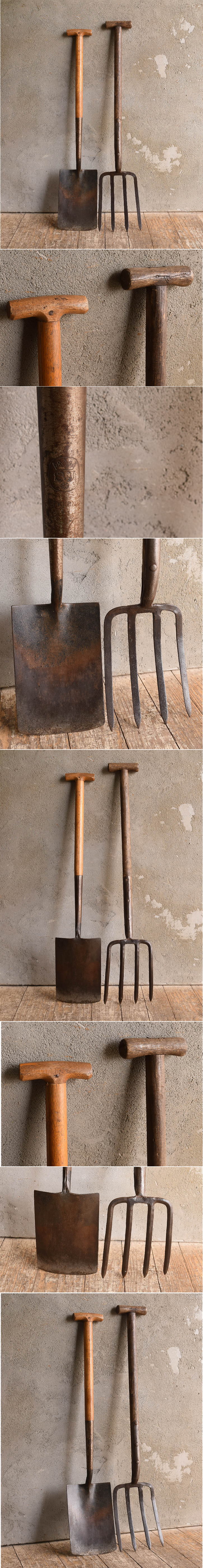 イギリスアンティーク ガーデンフォーク&スコップ 農機具 13591 收藏