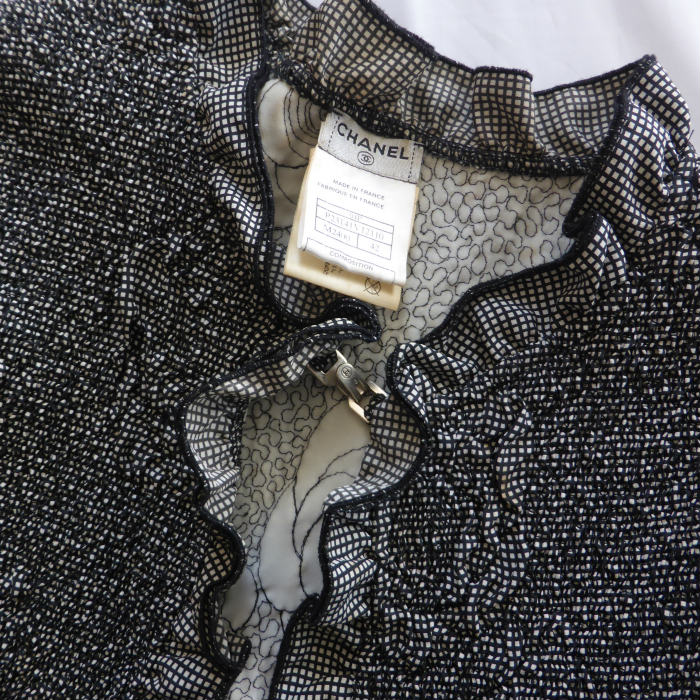シャネル (CHANEL)ギャザー フリル ジャケット カメリア 04P 42 ブラック×ホワイト P23141 ウェア(中古) 收藏