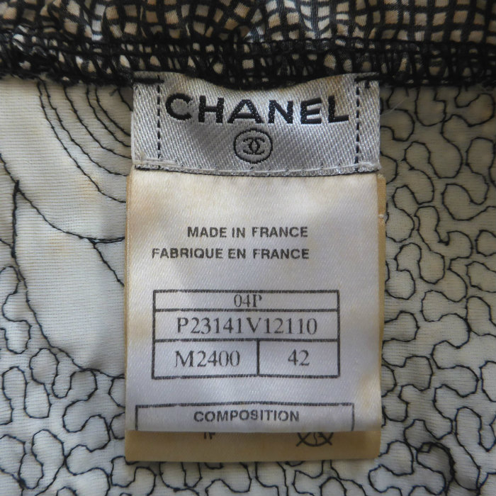 | シャネル(CHANEL) ギャザー フリル ジャケット カメリア 04P 42 ブラック×ホワイト P23141 ウェア(中古) |