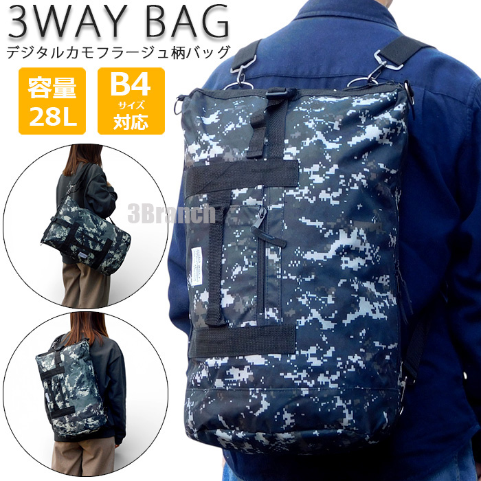 3WAY リュック 迷彩柄 デジタルカモフラージュ 大容量 レディース メンズ リュックサック ショルダーバッグ ボストンバッグ ネイビー 收藏