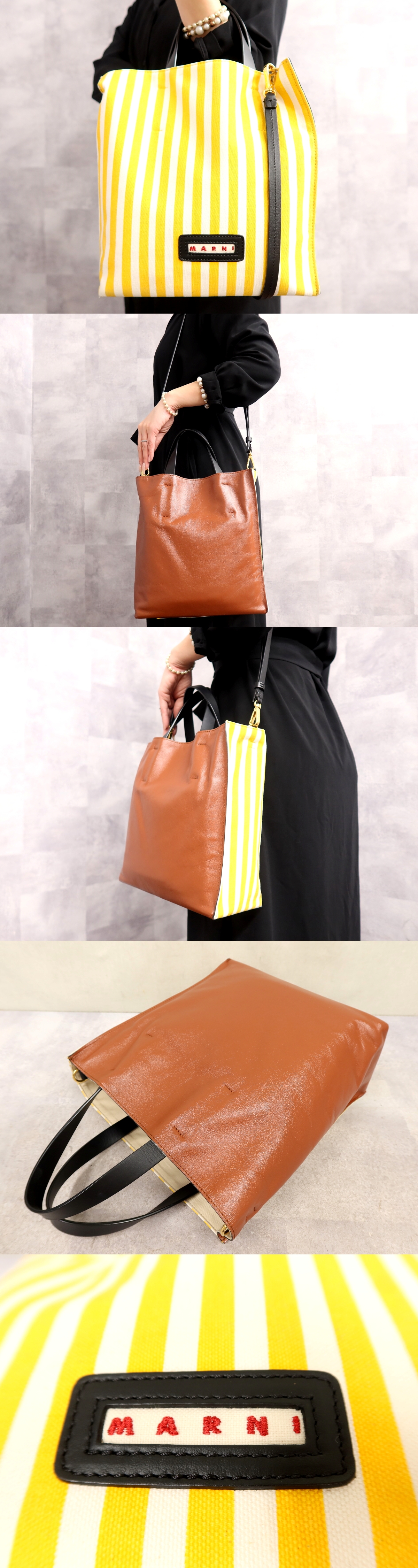 ●超美品●MARNI マルニ●ミュゼオ ソフト●キャンバス カーフ レザー 本革●2way ハンド バッグ●イエロー ブラウン●G金具●B5●Js66642 收藏