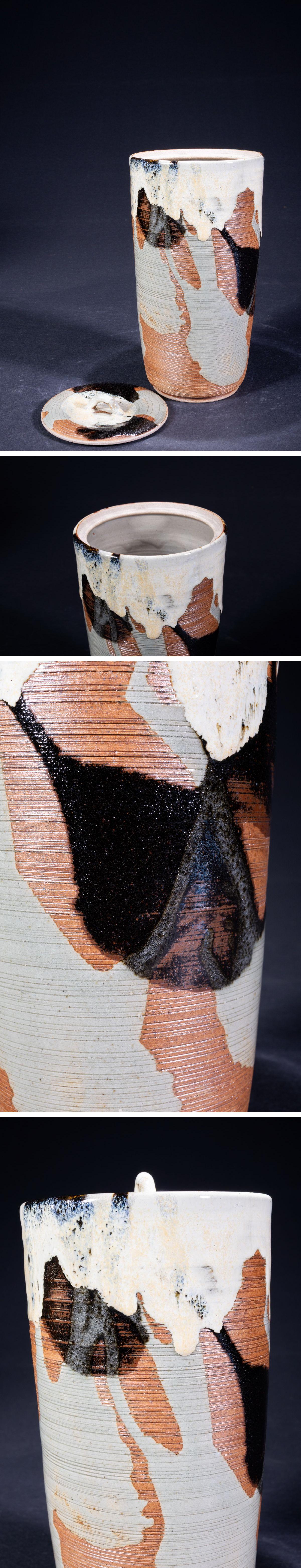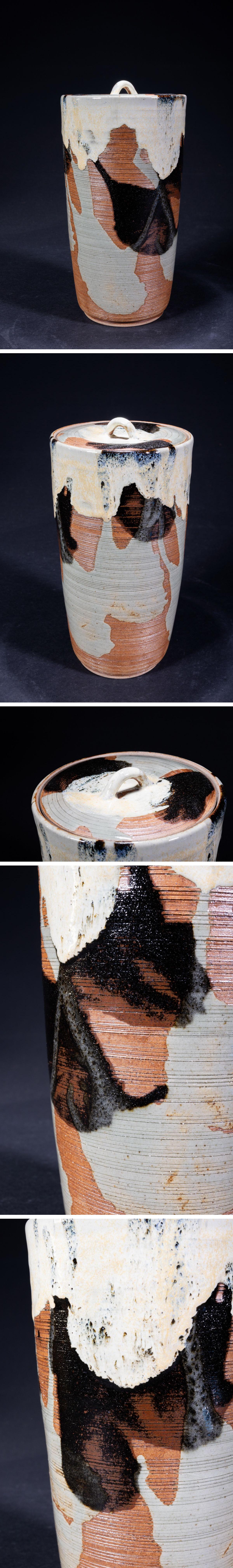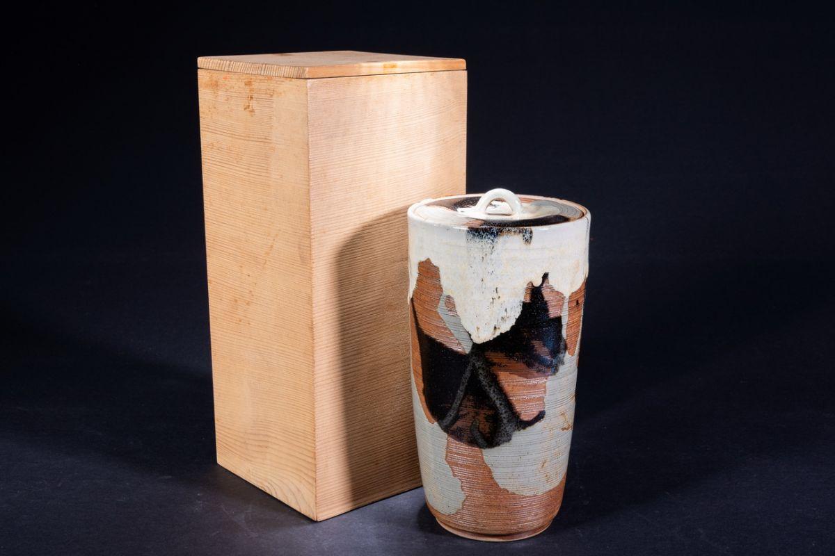 【珍品堂】1円から 細水指 釉垂高取 在銘 水指 蓋付 木箱 阿漕焼 茶道具 蓋付き 茶道具 美品 H22cm N-A67D-CG2 收藏