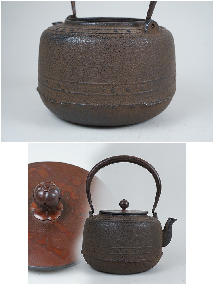| 商品説明 | 古い鉄瓶です。斑紋唐銅蓋、鉄瓶、大きな傷みありません。 水漏れ等もありませんでした。宜しくお願いします。 高さ堤手まで21.0cm 口径8.5cm 胴径15.6cm 重さ1,745g | |