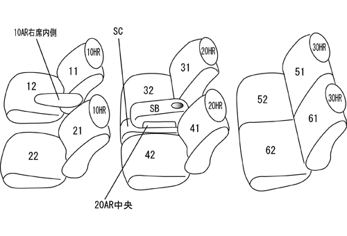 | 適合形状 | 1・2列目背もたれバックテーブルは、テーブルを取り外し、カバーに穴開け加工が必要 | ||