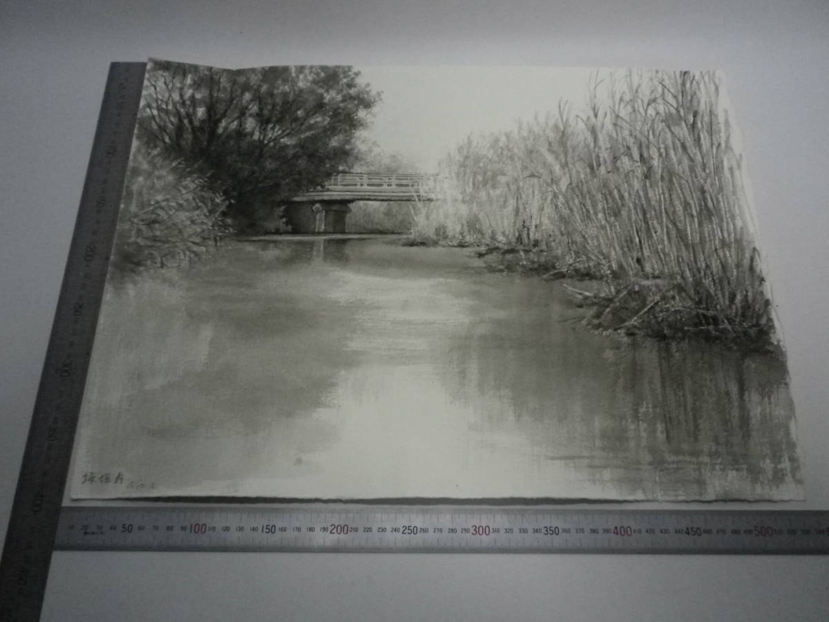「近江八幡 葦簀原」水墨画【坂垣内 将泰】作者直筆原画「真作」P10号ハーネミューレ紙(経年保管品)【送料無料】00700024