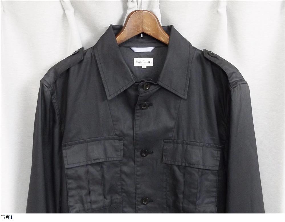 ◆PaulSmith ポールスミス リネン シャツ ジャケット ポリウレタンコーティング チャコールグレー 麻 エポーレット ミリタリー アーミー 收藏