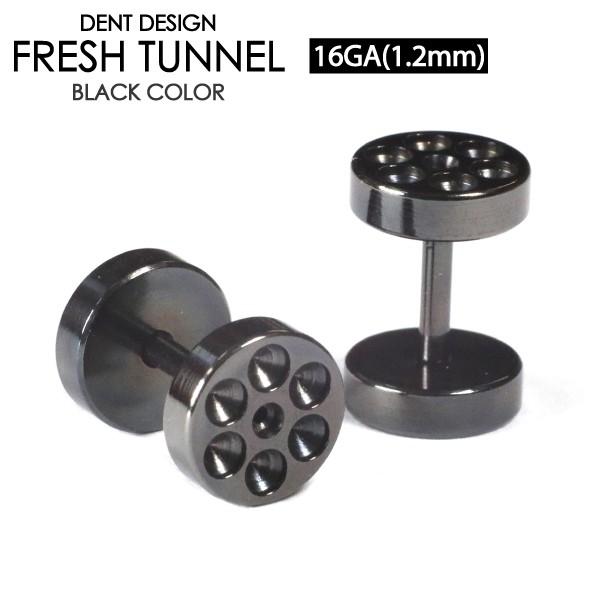 フレッシュトンネル ブラック 凹仕様 16G(1.2mm) BLACK カラー サージカルステンレス316L ボディーピアス 稀少デザイン ロブ 16ゲージ┃ 收藏