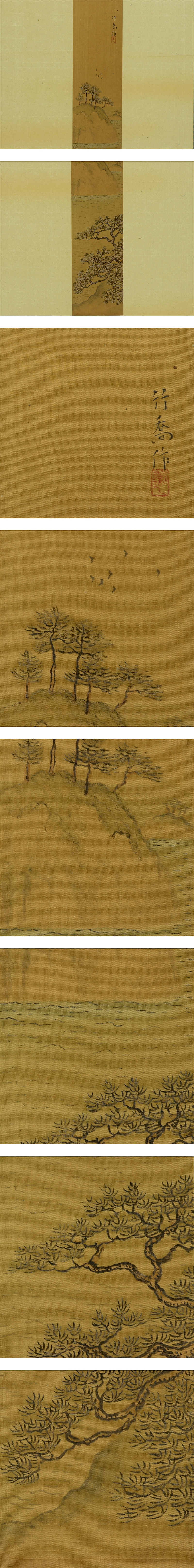 №2106136【模写】小野竹喬【短冊・海辺松図】◆絹本◆合箱◆改装済掛軸 | |