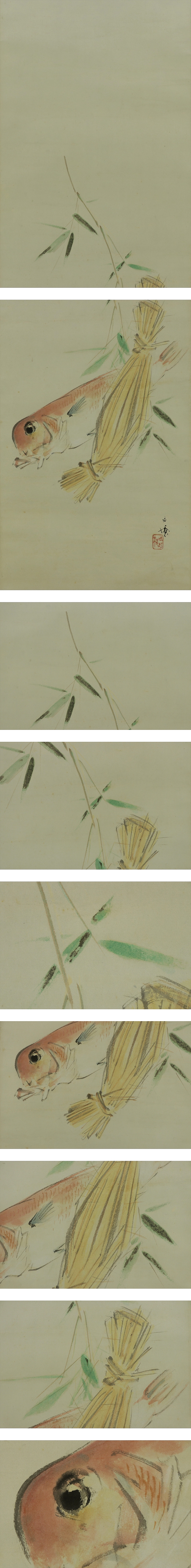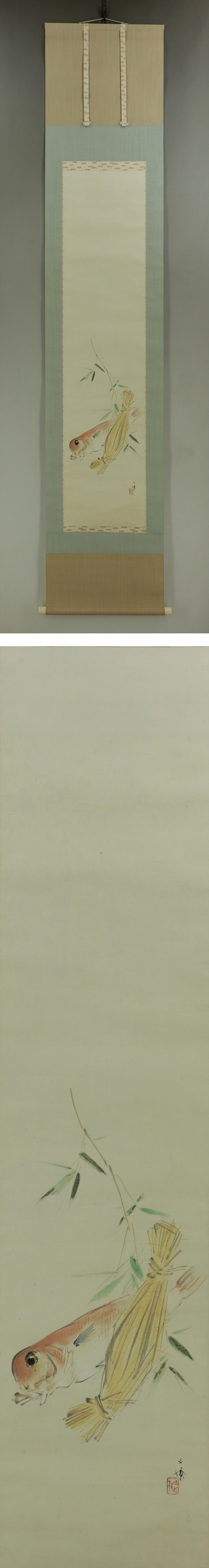 №2402027【模写】林文塘【笹に甘鯛】◆紙本◆共箱◆掛軸 | |