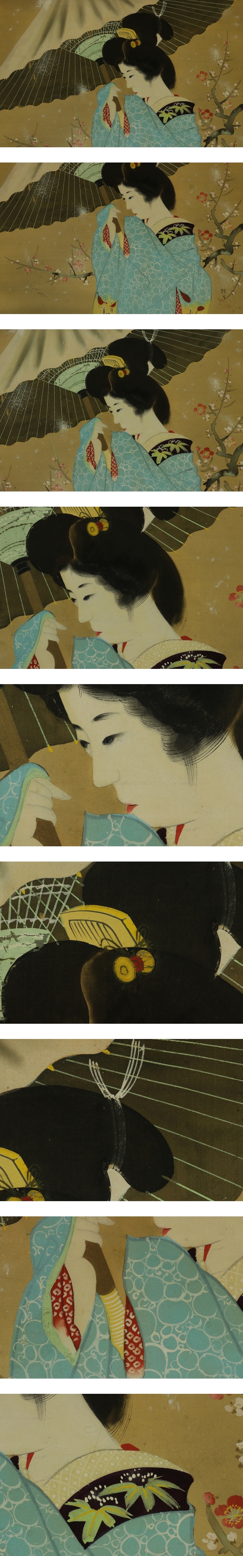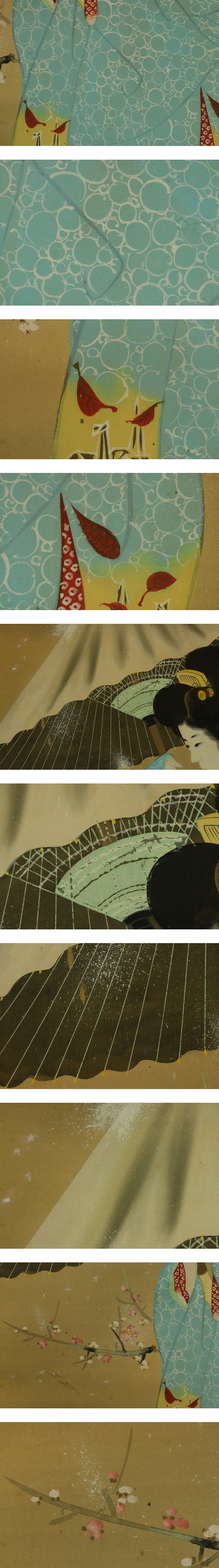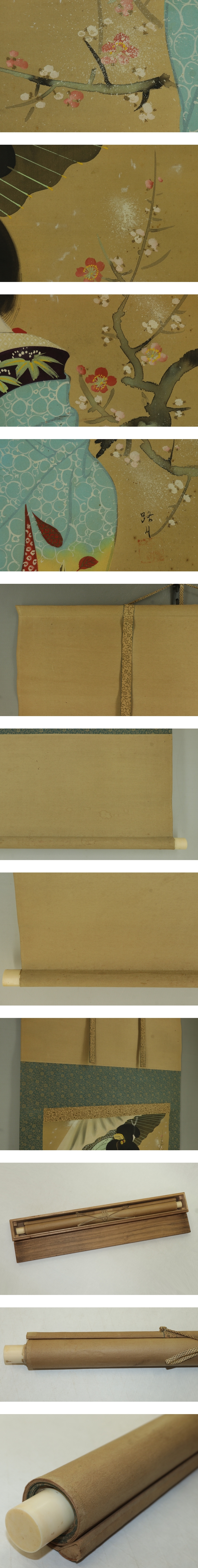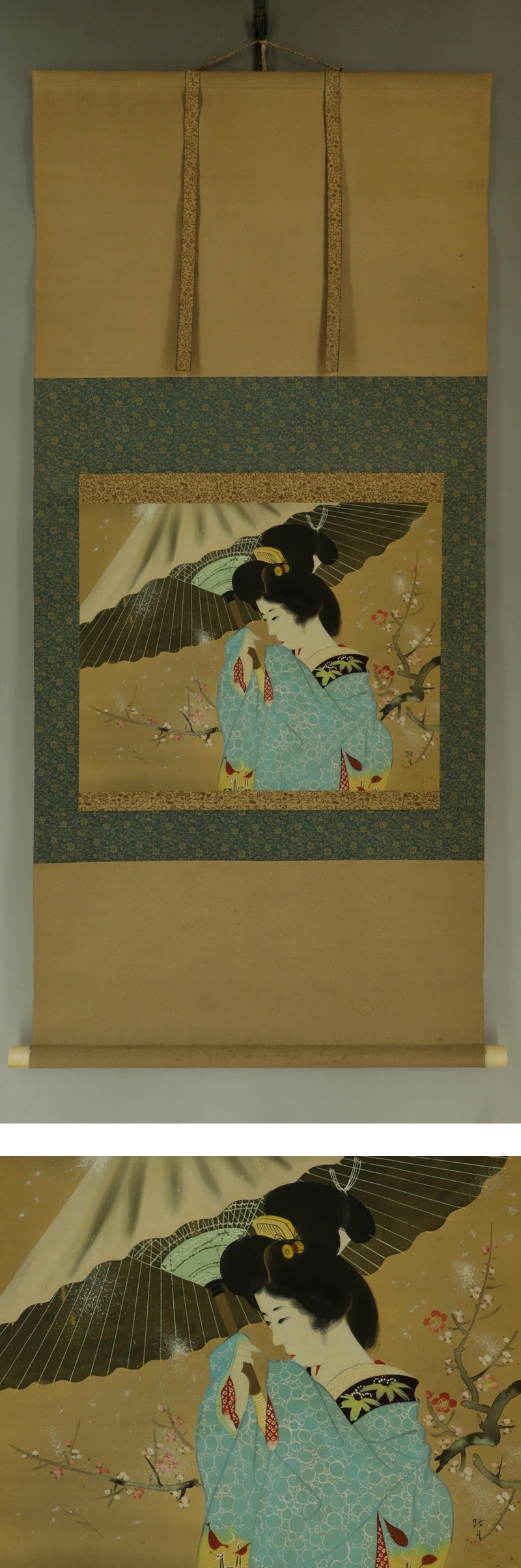 | №2407006【肉筆】在銘【蛇の目美人】◆絹本◆合箱◆掛軸 | |