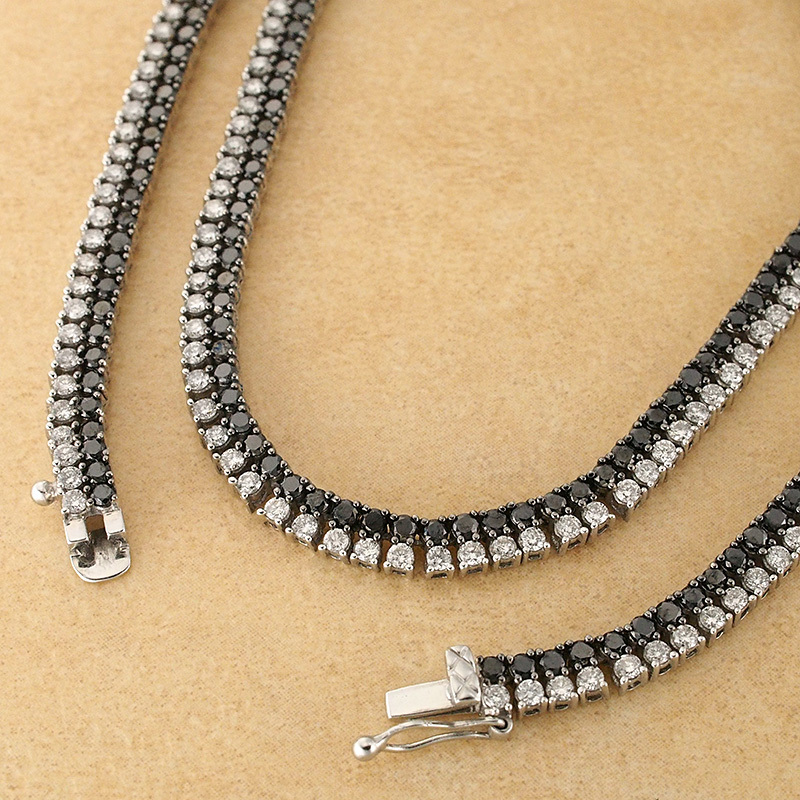 ダイヤモンド/10.00ct ブラックダイヤ 2重 デザイン ネックレス K18WG 收藏