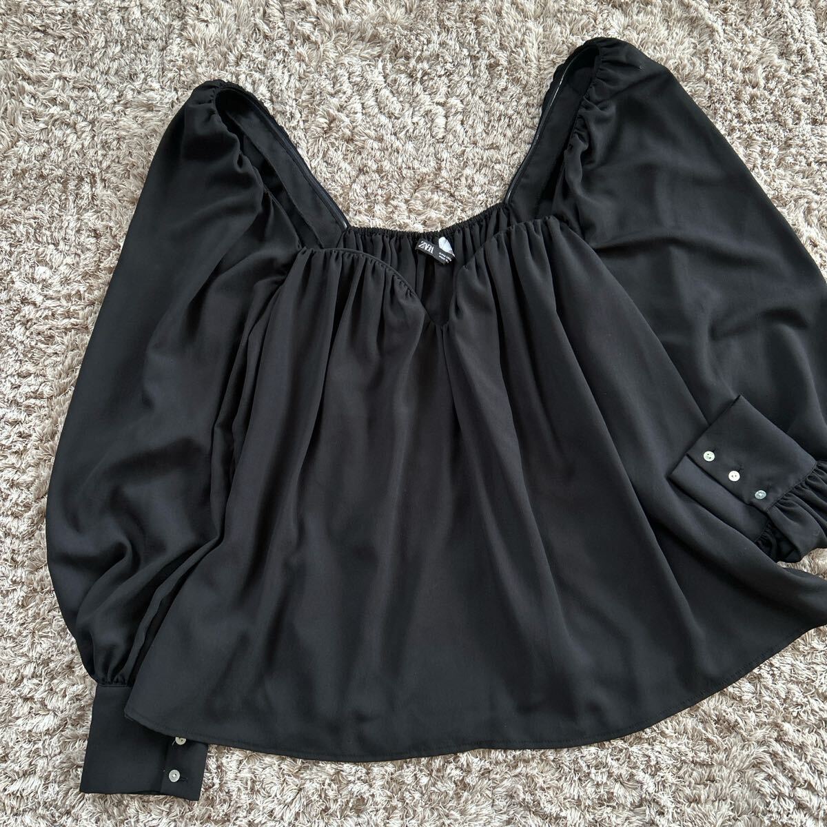 シフォン素材のブラック長袖ブラウス、ボタン付き袖口デザイン。| 出价者 | 信用 | 价格 | 时间 |