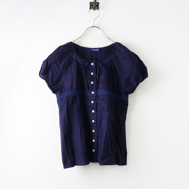 ピンクハウス PINK HOUSE 綿ローン スモッキング刺繍 パフスリーブ ブラウス ネイビー/シャツ トップス【2400014438413】 收藏