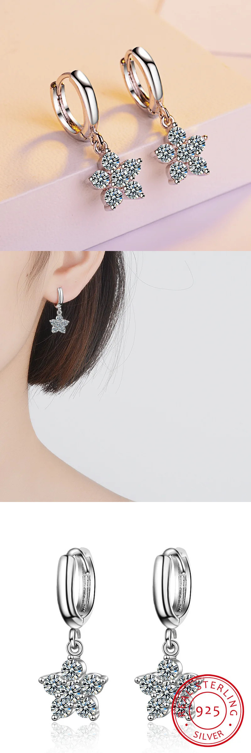 ピアス ジルコニア クリスタル シルバー ドロップ フラワー プラント リング 植物 花 レディース 925 スタンプ カラー ジルコン 收藏