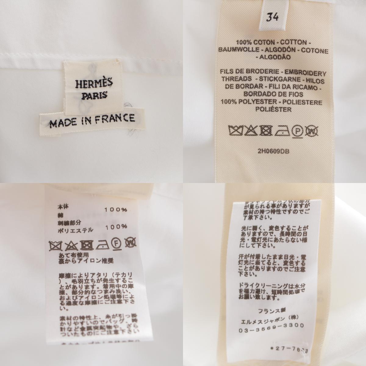 エルメス コットン ツイリーネック ボウタイ 長袖 ブラウス 2H0609DB ホワイト 34【中古】 收藏