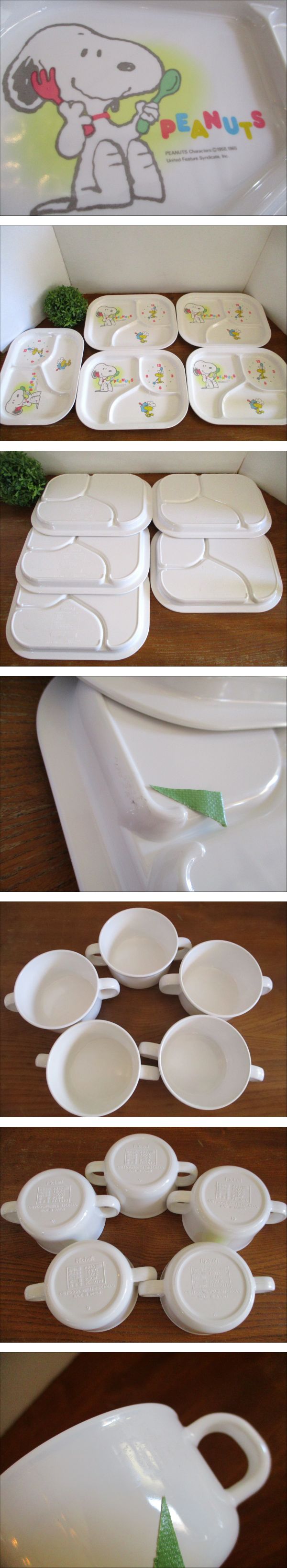 【美品】Richell リッチェル スヌーピー PEANUTS ランチプレート5枚&スープカップ5個 合計10点セット※シール跡あり メラミン 軽量 子供用 | |||