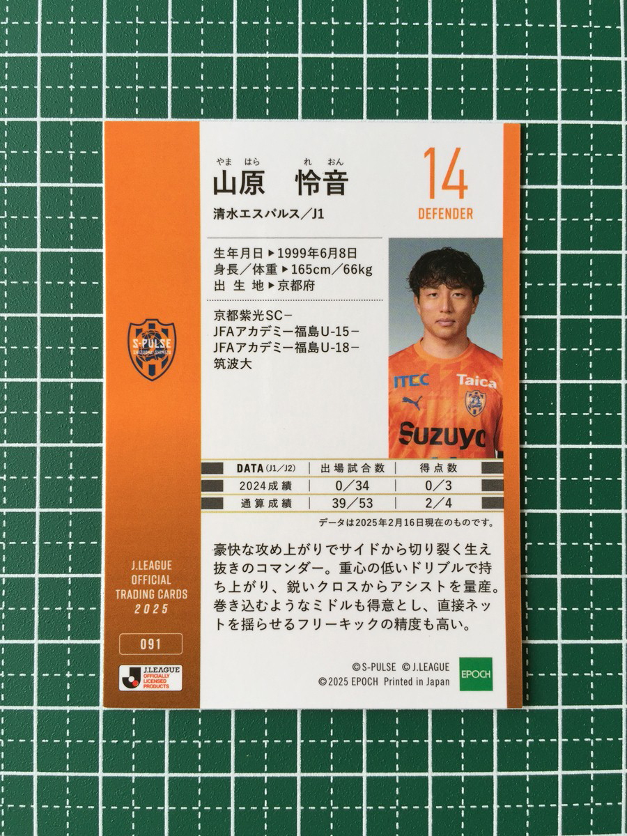 ★EPOCH 2025 Jリーグ オフィシャルトレーディングカード #091 山原怜音[清水エスパルス]レギュラーカード★ 收藏
