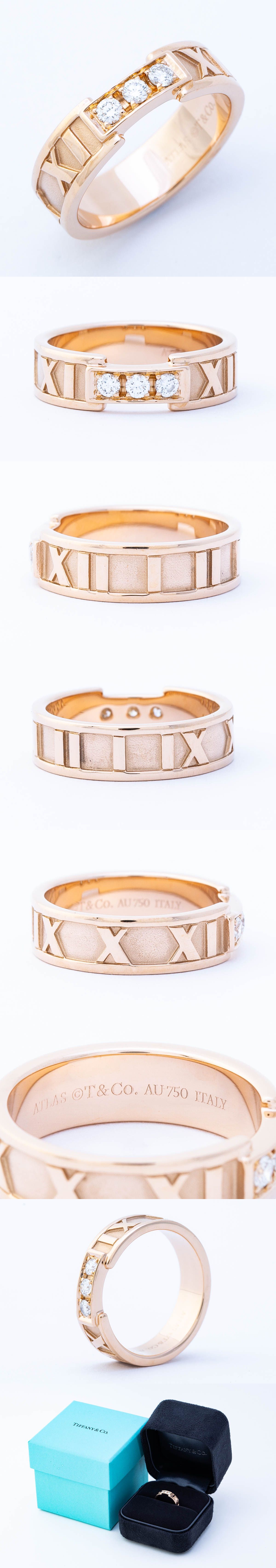 【新品仕上済】TIFFANY&Co. ティファニー ATLAS アトラス K18YG 3Pダイヤモンド リング 指輪 10号 ケース付 #36205YR 收藏