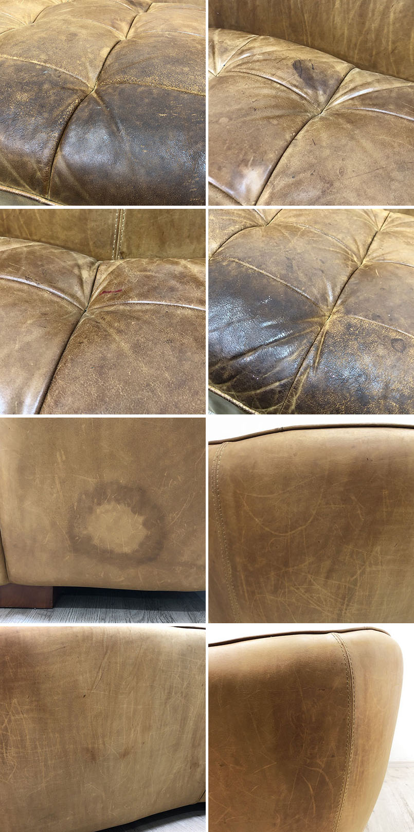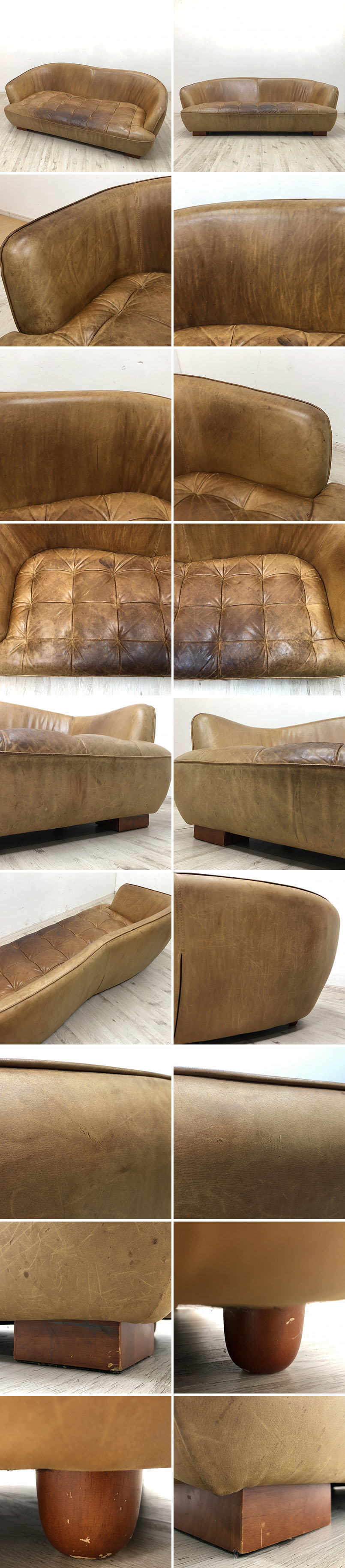 こちらはCRASH GATE クラッシュゲート tabu タブー OPIUM SOFA オピアムソファ 3Pソファです。 中古品です。 オピアムソファは、オイルレザーの重厚感と包み込むような曲線の丸みのあるフォルムが特徴で、 かわいらしさと優しさ、ハードさの絶妙なコンビネーションが魅力のお品です。 曲線の美しさを最大限まで追及したオピアムソファは、シンプルな形状のソファに比べて かなり複雑なフレーム構造になっており、革の張込みもたいへん難しいため、 決められた熟練の職人のみがハンドメイドで張込んでいます。 背面の美しいフォルムがよく見えるよう、ぜひお部屋の中央に配置していただきたいソファです。 張地にはオイルレザーを使用。 使い込むことで経年変化していく革の表情や座り心地、その格好良さを存分に味わえるよう、 経年による変化が起こりやすい素材をあえて選んでいます。 使い込むほどに愛着や親しみが深まり、使う人の生活に寄り添ったものへ変化していくソファ。 この機会にぜひいかがでしょうか。 【CRASH GATE クラッシュゲート】 CRASH GATE/クラッシュゲートは、家具の生産地、福岡県大川市にある関家具が展開している、 シンプルナチュラルやクラシック、ビンテージやインダストリアルなど、 多種多様なテイストの家具を組み合わせることで生まれる新しい空間や、 意外な組み合わせで生まれるギャップやユーモアのある空間を提案する 「CRUSH CRASH PROJECT(クラッシュクラッシュプロジェクト)」の家具を扱うインテリアショップです。 今の暮らしにフィットしながらも長く愛着を持って使っていただけるプロダクトを多数展開しています。 【コンディションについて】 ![]() こちらは本来はファブリック(布製)のクッションがついておりましたが、そちらは付属しません。 お好みのクッションをご用意して使うのはもちろん、そのままでも十分お使い頂けるお品です。 ![]() 全体的に使用感のあるお品です。 使用による変色、ペン跡、シミ、キズなどがあります。 また、前オーナー様のお子様がつけたと思われる表面のキズが多数あります。 ![]() 手の届く範囲は可能な限り清掃を行っておりますが、座面が外せず隙間が非常に狭い為、 上記画像の様に隙間は完全に清掃しきれておりません。 詳細につきましては下記画像も合わせてご参照ください。 ![]() レザーの状態はヴィンテージ加工と実際の使用感が一体となっており、 使い込まれた雰囲気が強く出ております。 へたりなどは感じられず、しっかりとした座り心地です。 皆様のご入札をお待ちしております。 再良市場の他のお品物はこちらから!