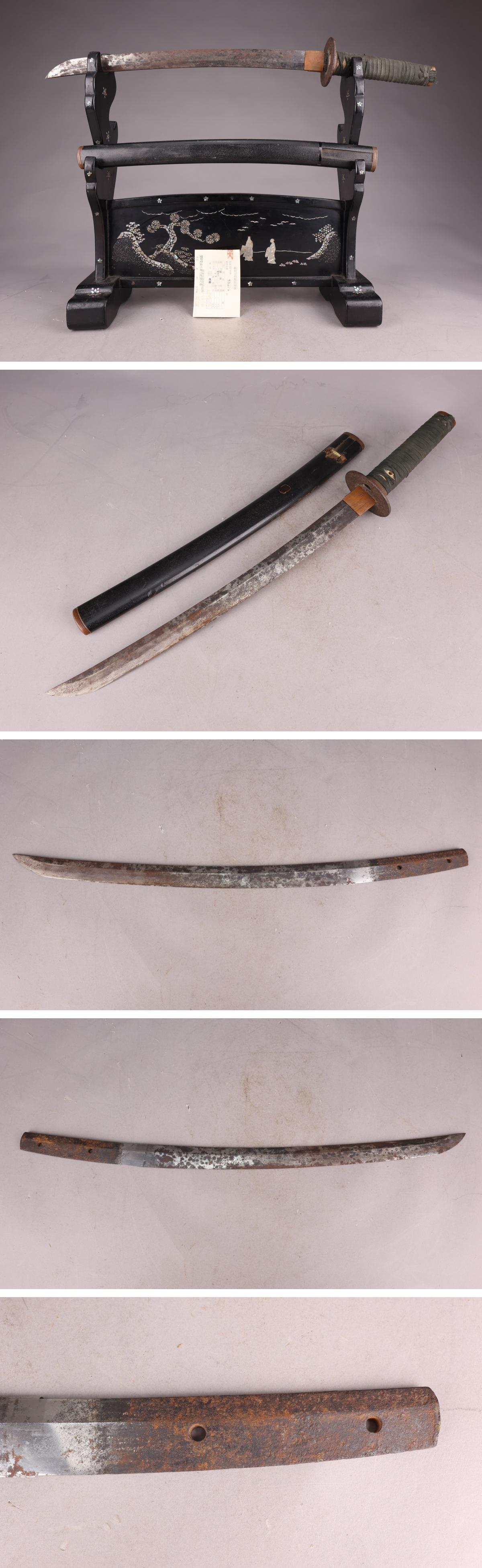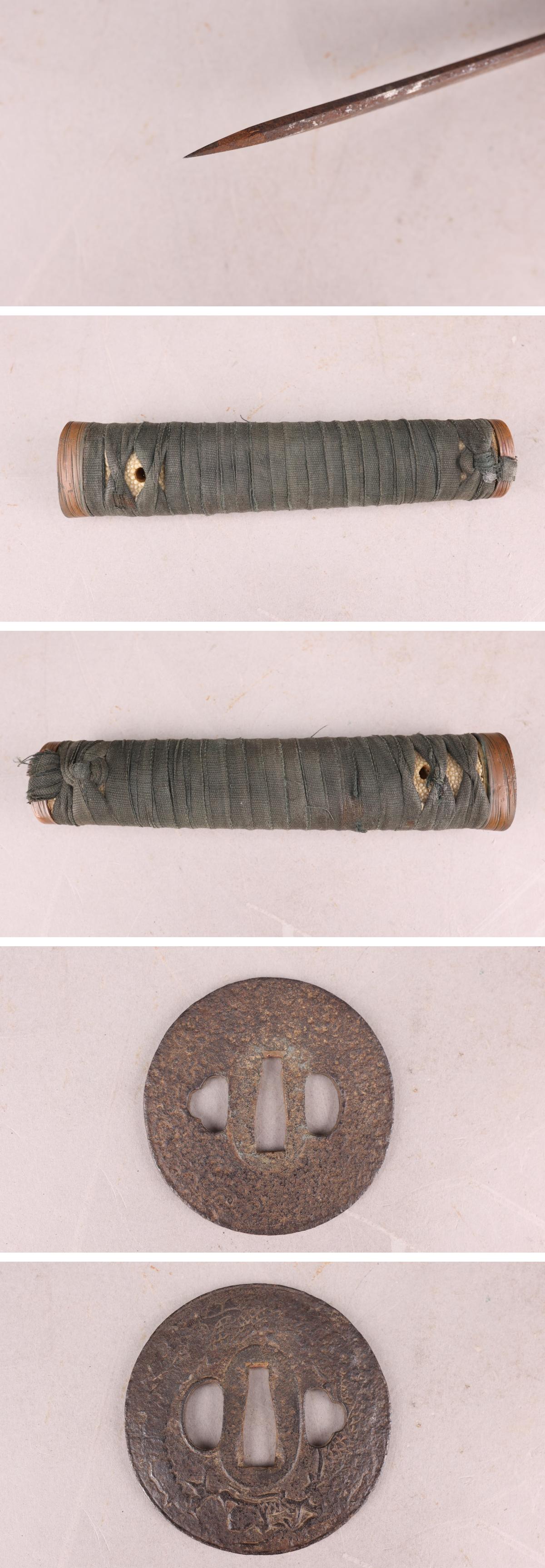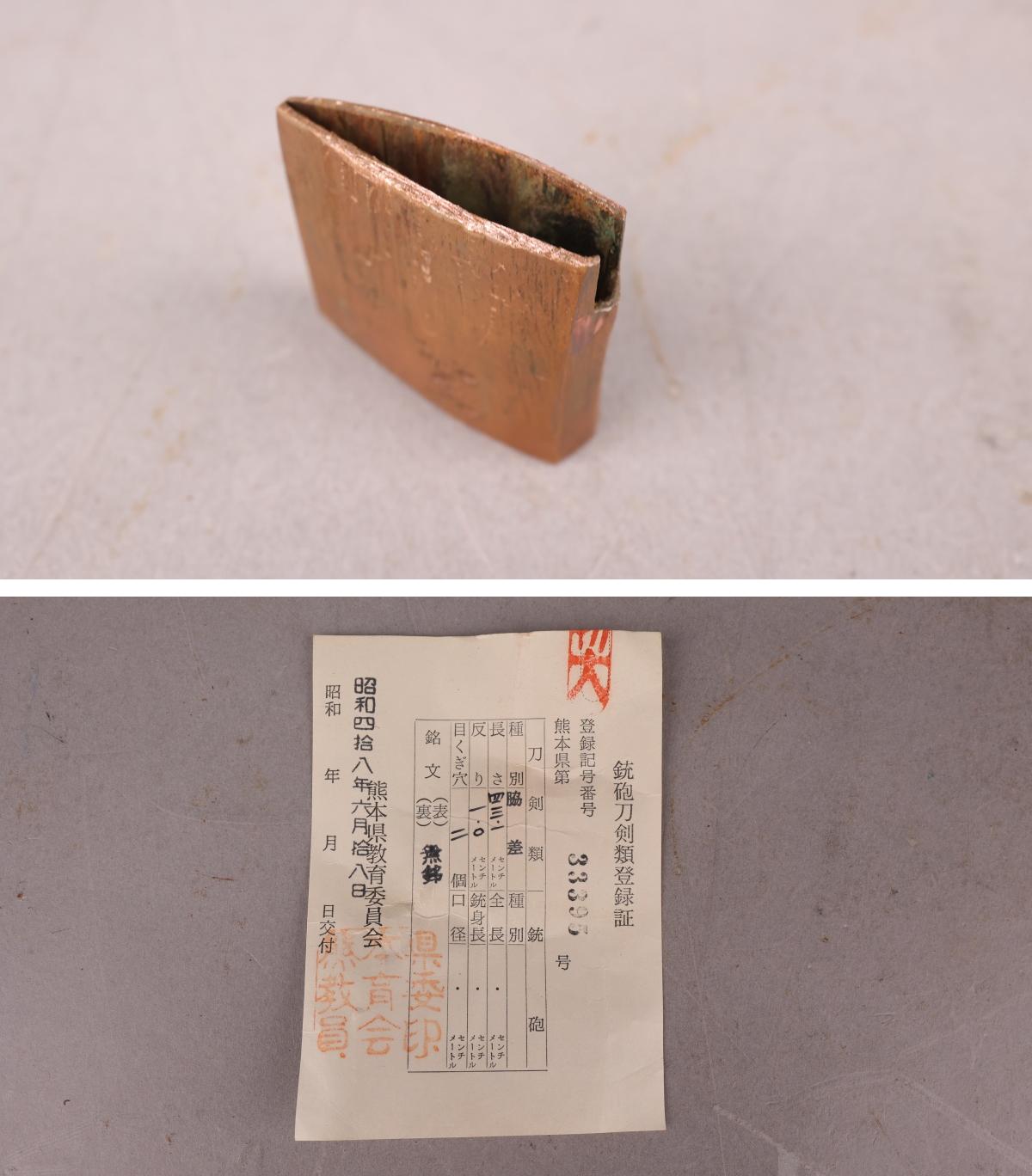【志】A1308脇差 無銘 登録書付 長さ43.1㎝ 反り1.0cm 明治時代 刀剣美術 武道具 日本刀 太刀 鍔 縁頭}= 收藏