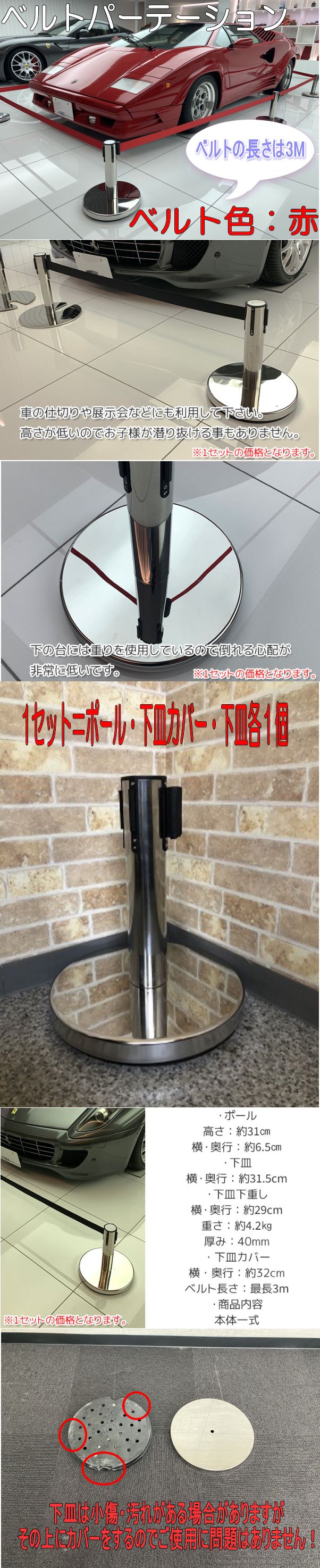 | ・こちらの商品ははポール1本・下皿1個・下皿カバー1個で1セットの販売となります! 1セットではベルトをつなげることが出来ないので2セット以上ご購入下さい。 ・ベルトの色は赤/黒いずれかをご購入後、取引連絡にてご連絡ください。 ・本数によってはベルト色のご希望をお聞きできない場合がございます。事前に質問にて問い合わせください。 ・下皿の重しには小傷がある場合がありますが、ご使用に問題はございません。ご理解の上ご購入をお願い致します。 ・ヤフーオークションのシステム上、9個以上でのご入札ができません。9個以上でのご購入希望の場合は、お手数ですがご質問にて一度お問い合わせください。 |