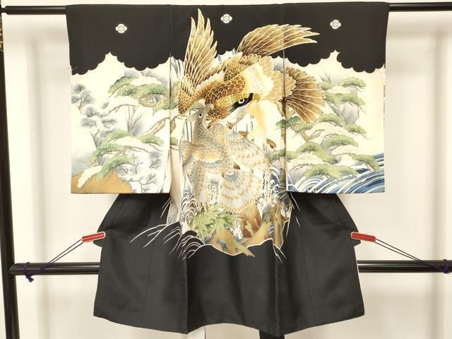 平和屋着物[]お宮参り 男の子 祝着 産着 初着 のしめ 刺繍 鷹 鷲 笹松文 金彩 逸品 DAAS9187ma 收藏