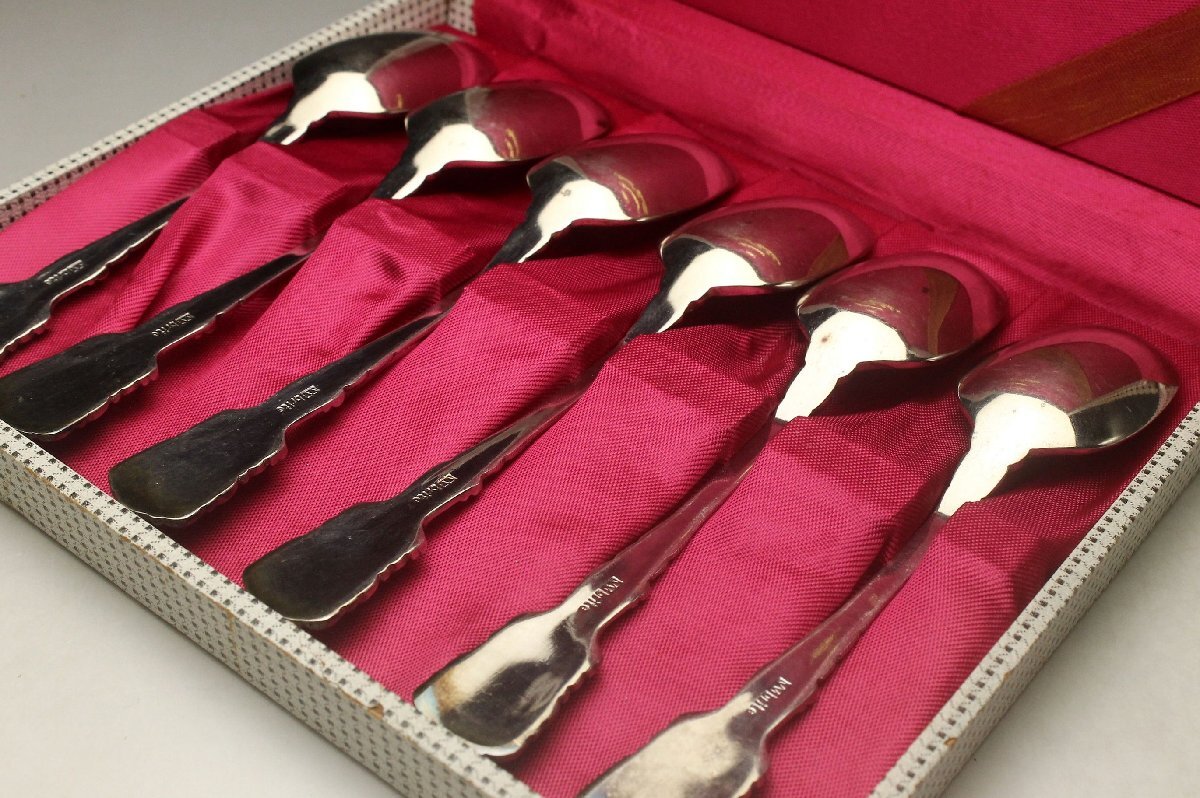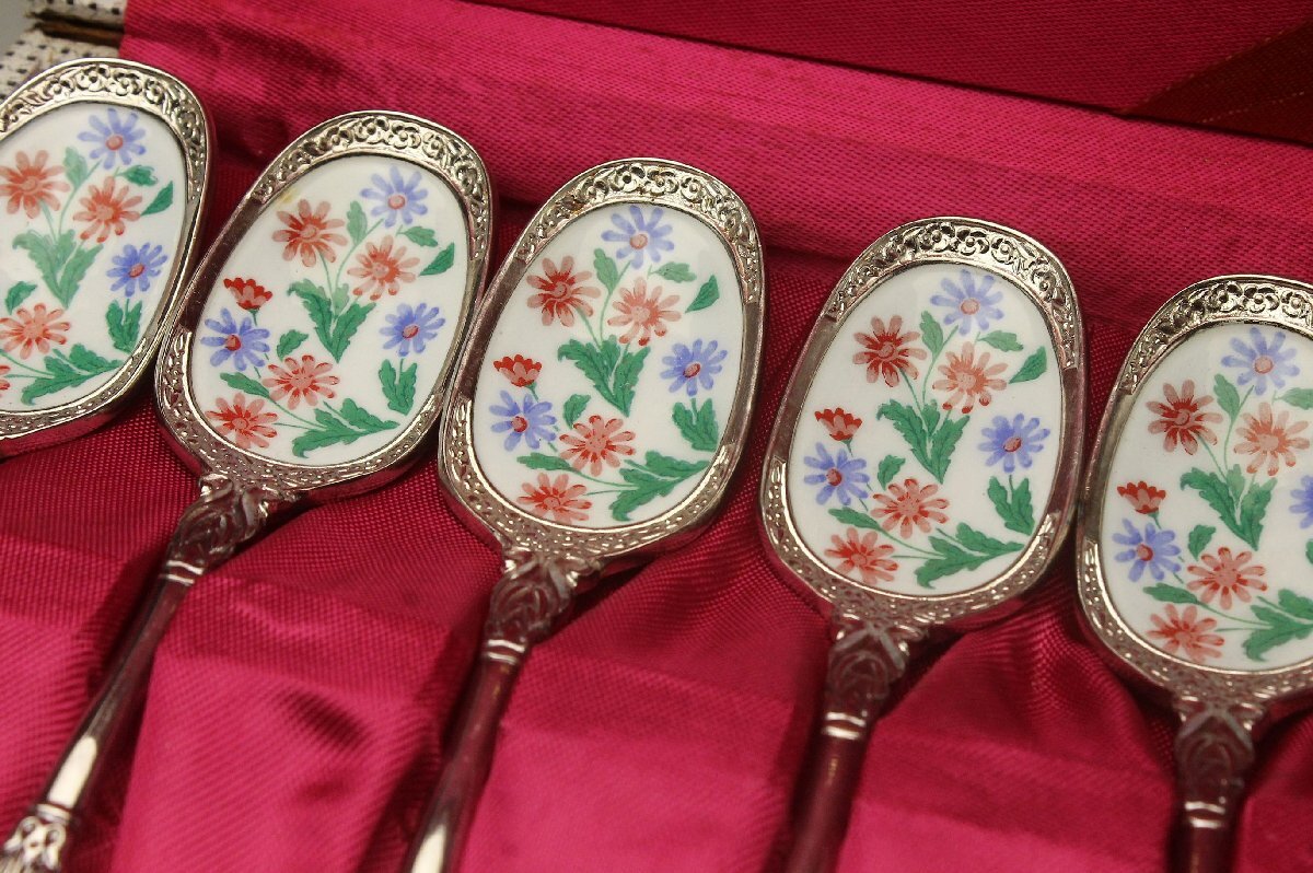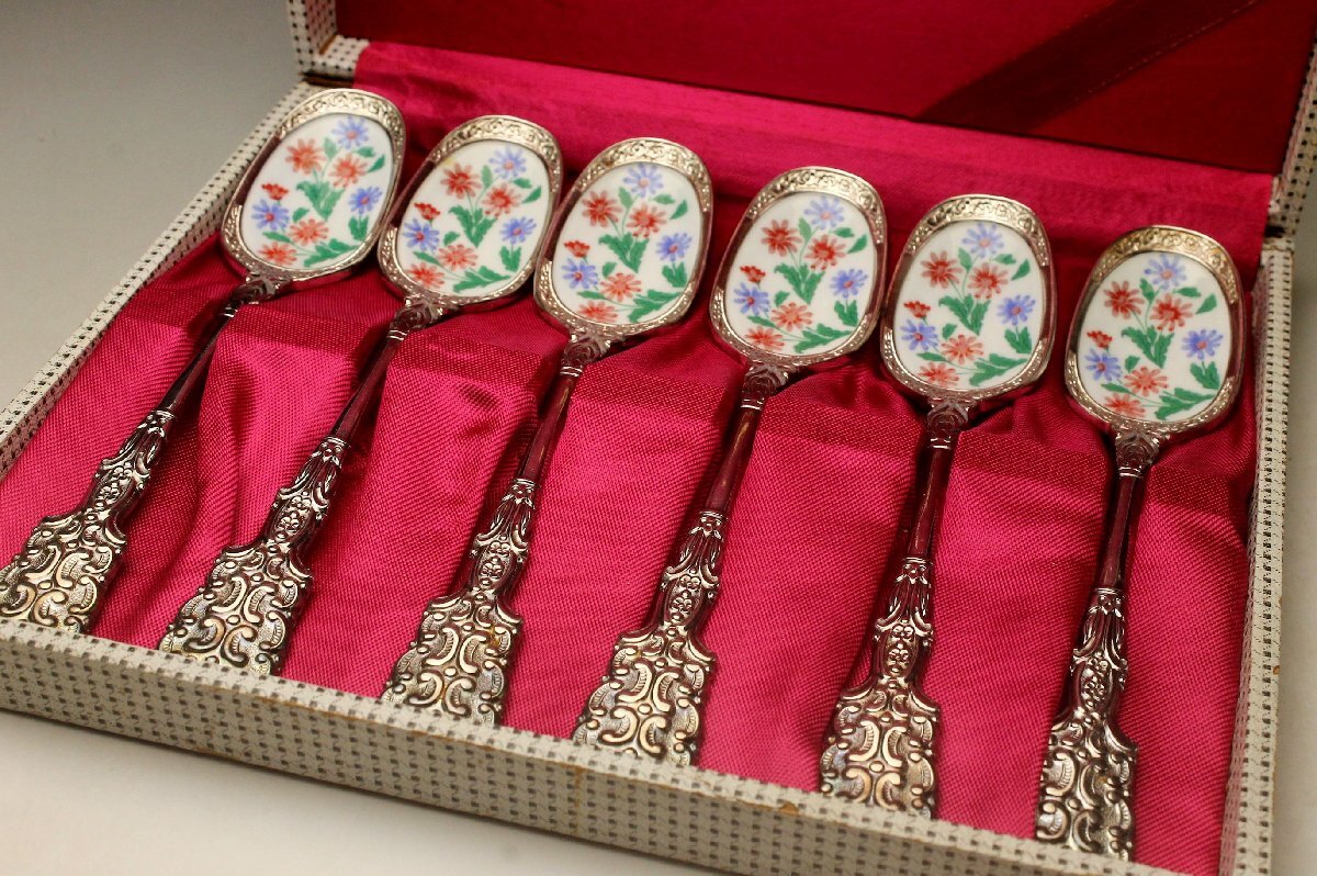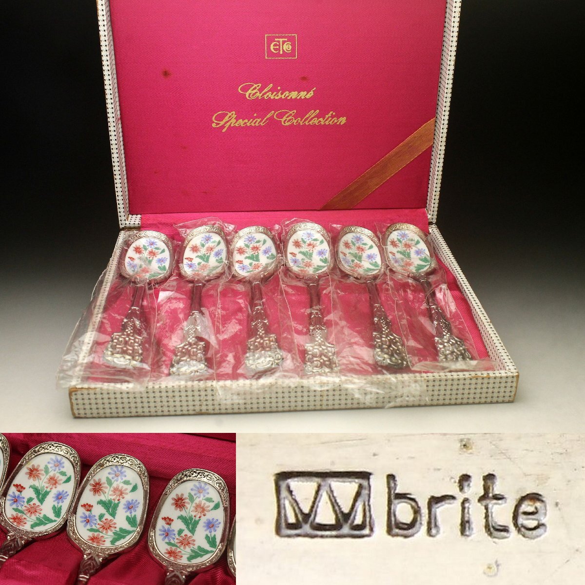 【余韻】 ブライトリンデン七宝焼き 銀メッキ ティースプーン6本セット★古い化粧箱<同梱可> 收藏