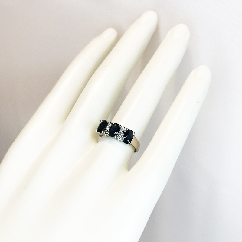 Pm900 プラチナ サファイア3P ダイヤモンドリング 中石1.71ct 枠石0.08ct qoj.1921 收藏