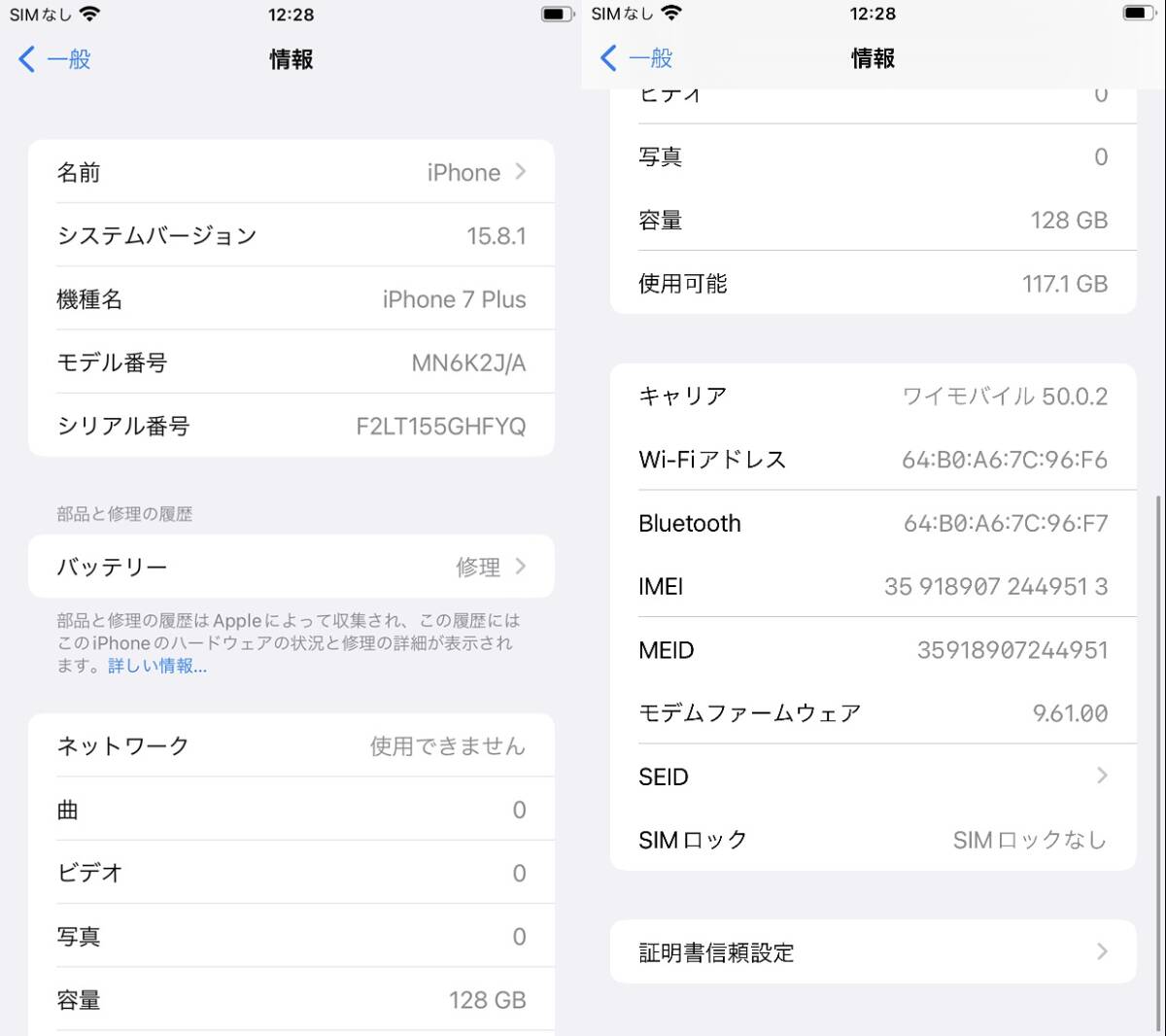 | こちらの商品は、現在ネットワーク利用制限(◯)判定となりますので、利用制限のない事を確認しております。 ※出品時の日付での確認となります。念のため、ネットワーク利用制限をご確認頂いたうえで、ご入札下さい。 ※Wi-Fi環境があり、初期設定後SIMカードがなくても、すぐにインターネット接続できます。 | ||
