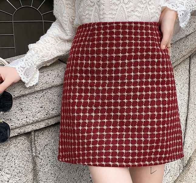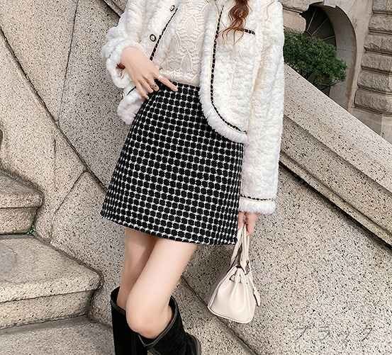 タイトスカート ミニスカート カジュアル かわいい チェック柄 秋冬 ボトムス シンプル M ブラック 收藏
