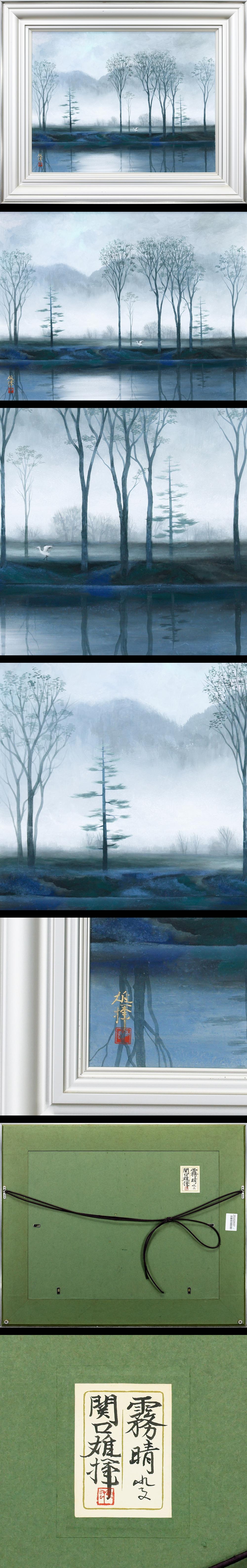 【真作】【WISH】関口雄揮「霧晴れる」日本画 15号 大作 金落款 共シール ◆静寂に包まれた青彩の森 〇日展会員 師:東山魁夷 #25102937 收藏