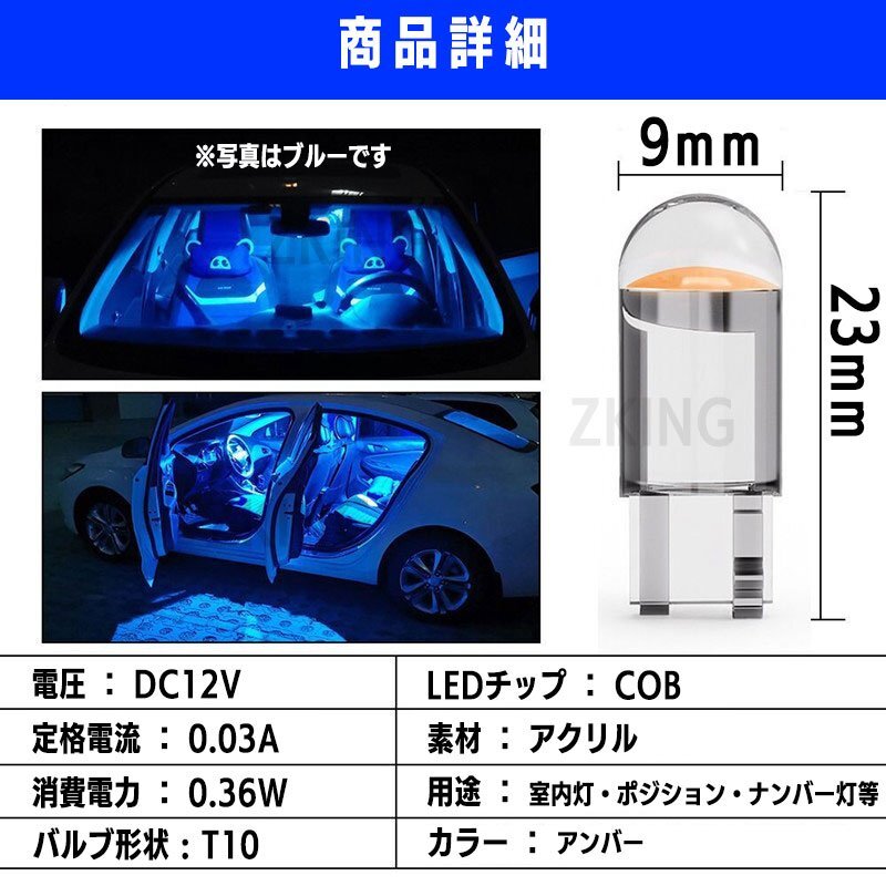 T10 LED ウェッジ バルブ アンバー オレンジ ナンバー灯 ポジションランプ ルームランプ トランク灯 バイク クリスタル 收藏