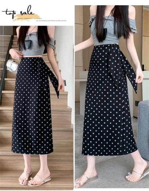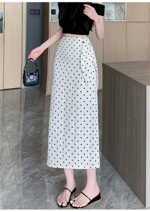 ロングスカート Aラインスカート ドット柄 シンプル カジュアル お出かけ レディース M イエロー 收藏