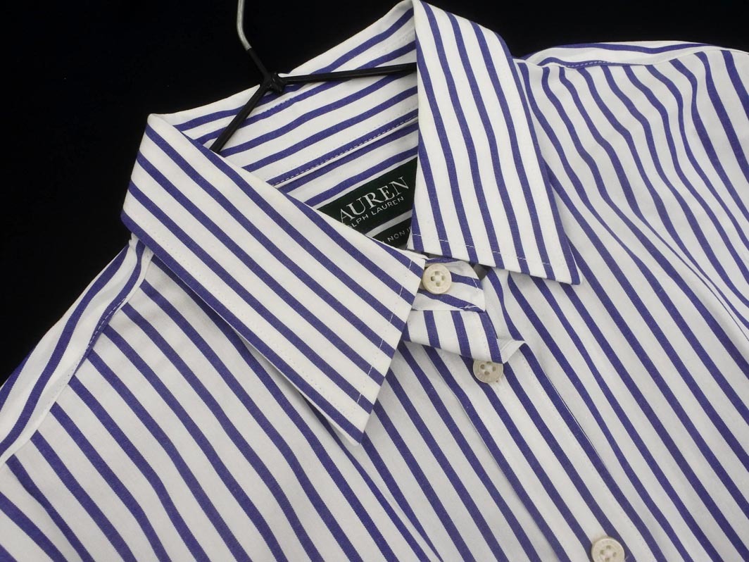ネコポスOK Ralph Lauren ラルフローレン ストレッチ ノンアイロン ストライプ シャツ sizeXS/白x青 ◇■ ☆ fjc9 レディース 收藏