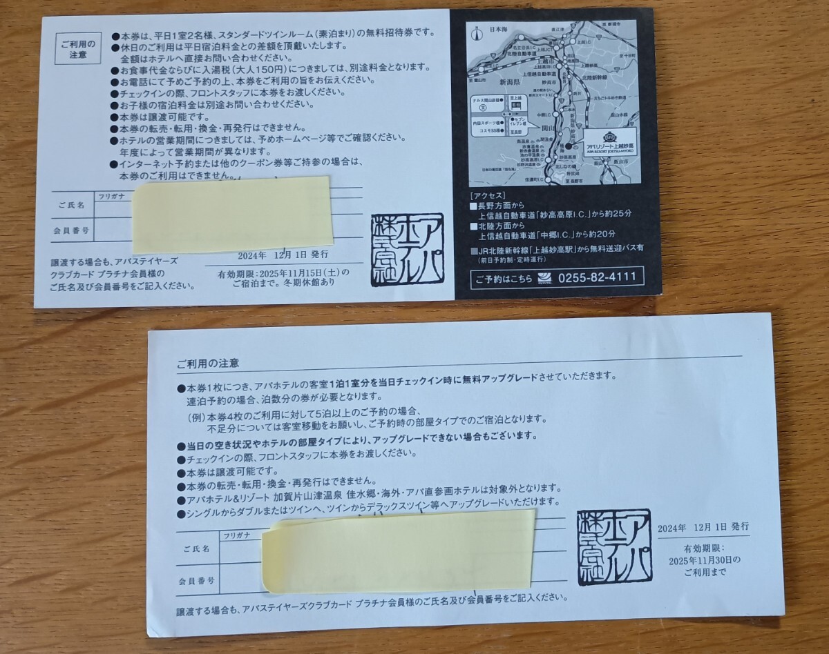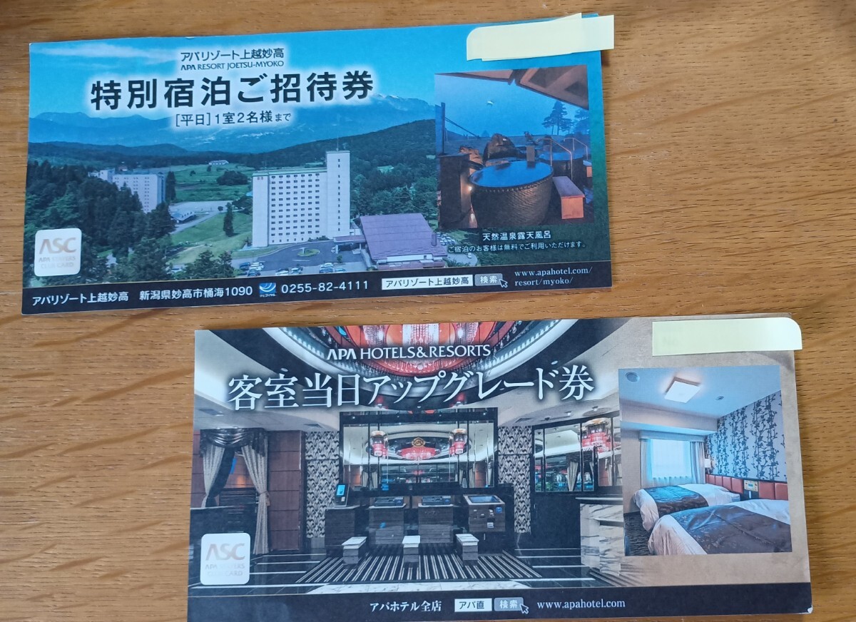 アパリゾート上越妙高 平日特別宿泊ご招待券とアパホテル アップグレード券 アパホテル 客室当日アップグレード券 APA 宿泊 收藏
