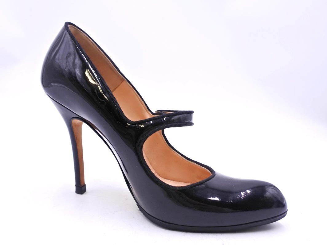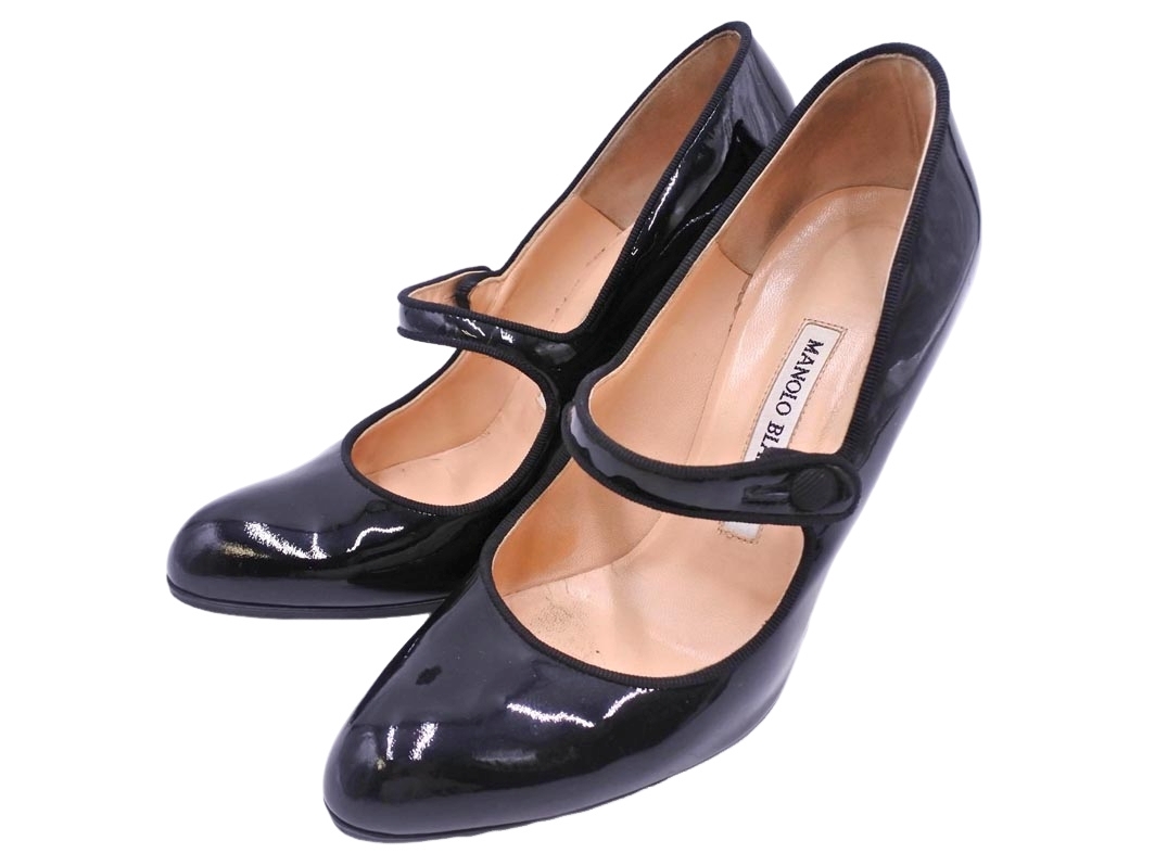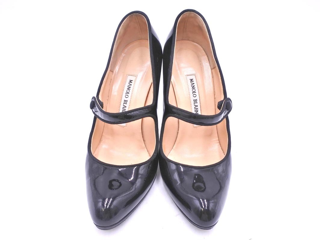 Manolo Blahnik マノロブラニク エナメル ストラップ パンプス size36.5(23cmくらい)/黒 ■■ ☆ fjd1 レディース 收藏